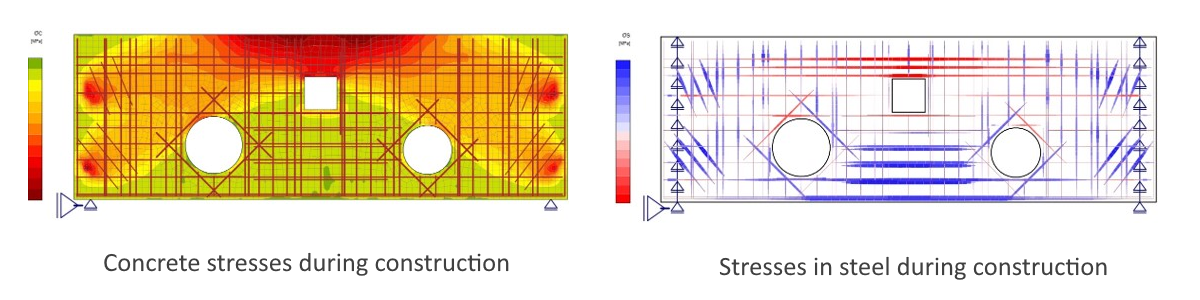 Traditional design approaches based on simplified strut-and-tie models provided an initial conceptual understanding, but they lacked the accuracy needed for final verification. Manual development of refined strut-and-tie models would have been extremely time-consuming and prone to conservative assumptions, potentially leading to inefficient reinforcement layouts.