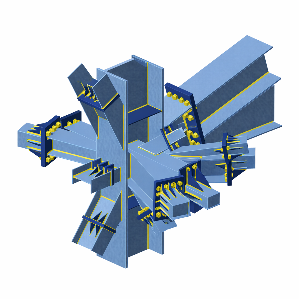 One of the most demanding tasks in the hangar project was verifying a node where 13 members converged into a single joint at irregular angles. This was exceptionally challenging because it required consideration of axial, shear, and bending interactions simultaneously in a highly unsymmetrical 3D geometry. Manually rebuilding the geometry and calculating stress interactions branch by branch would have been excessively time-consuming and prone to error.