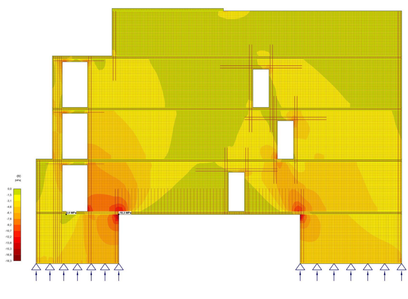 \[ \textsf{\textit{\footnotesize{Compressive stresses in the concreate of the deep beam}}}\]