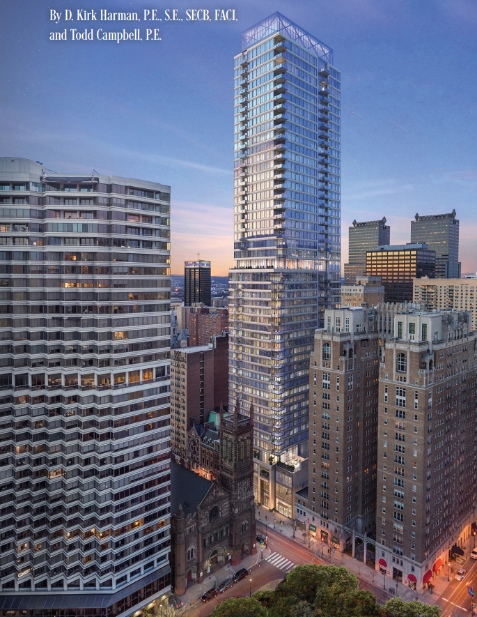 Walking columns present significant engineering challenges with no established ACI 318 methodology to guide their design. IMEG has mastered this specialized field through projects like The Laurel Rittenhouse Square in Philadelphia, where walking columns gradually transition loads over four floors to preserve a historic building while supporting 40+ stories above.