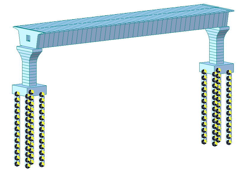 Pro modelování opěr a základových desek se používají podpory přenášejí pouze tlak. Pro piloty se používají nelineární pružiny založené na experimentálních P-Y křivkách. Tuhost pružin je definována koeficientem reakce podloží. Závisí na tuhosti půdy, Poissonově poměru, rozměrech základu, hloubce základu atd.