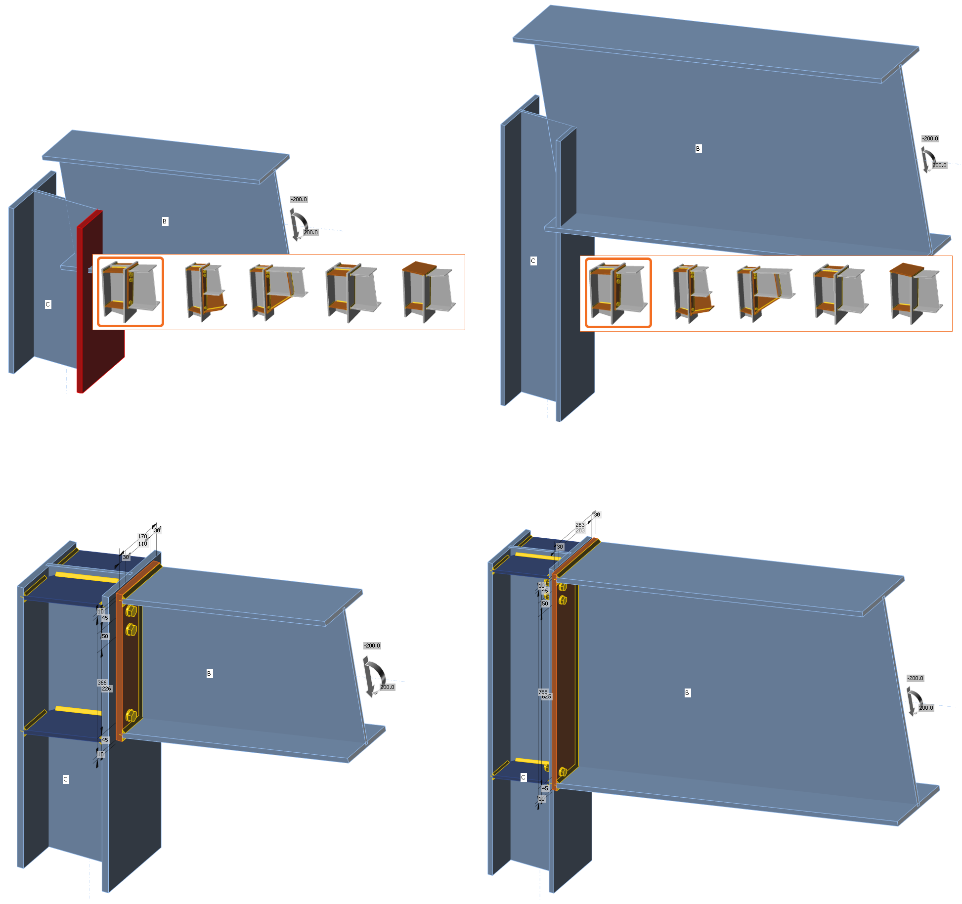 Šablony pro vytvoření styčníku mezi jednotlivými prvky jsou nyní parametrické. Tato změna udělala z jednoprvkových šablon ještě více účinný nástroj pro návrh připojení. Aplikovaná šablona může měnit své parametry (rozměry plechů, pozice šroubů atd.) v závislosti na výšce průřezu prvku, takže může být nyní okamžitě aplikována ve více případech.