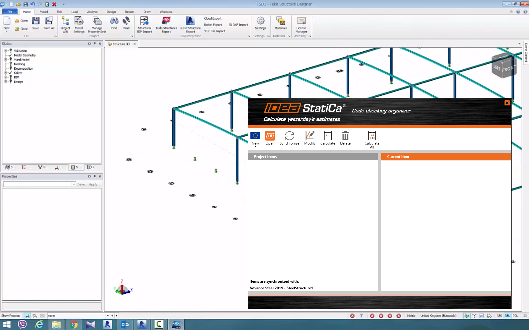 - Poté zvolíme příkaz Synchronize v aplikaci IDEA StatiCa Code-check manager a veškeré změny jsou automaticky aplikovány na IDEA StatiCa projekt bez nutnosti zadávat výrobní operace znovu.