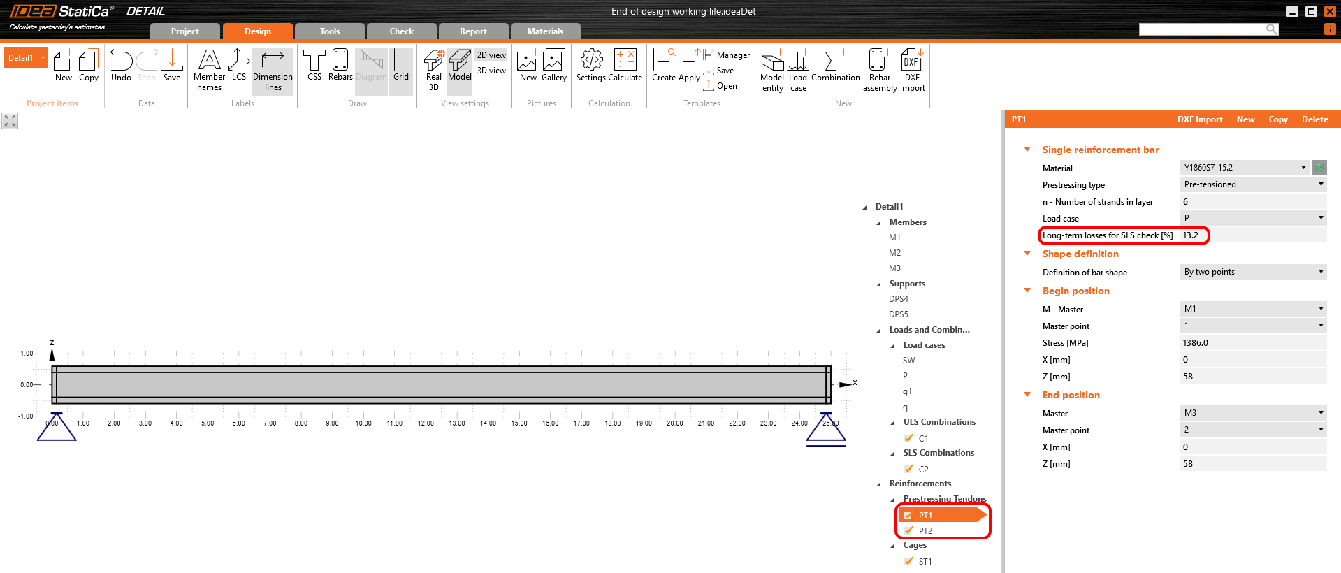 Než projdeme příklad, musíme pochopit, jak fungují přírůstky pro posouzení předpjatého betonu v Detailu.