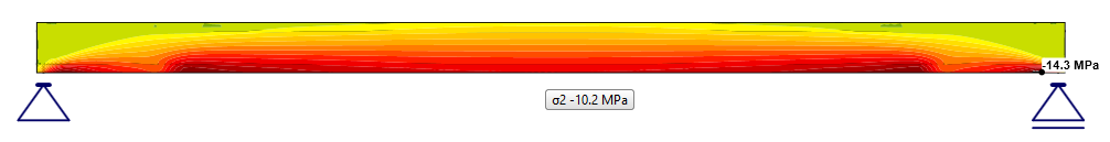- V lineárním přístupu (aplikace Beam) je ztráta způsobená okamžitou pružnou deformací betonu Δσpe stejná pro MSÚ i MSP. Důvodem je, že v případě lineárního přístupu používáme pro celou analýzu (i pro analytický výpočet ztrát) lineární materiálový model s modulem pružnosti Ecm, který se počítá z fck, a pouze pro posudku průřezů MSÚ používáme materiálový model, kde se modul pružnosti počítá z fcd.