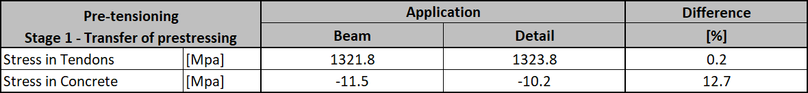 Na druhou stranu u posudků MSÚ lze očekávat významný rozdíl mezi výsledky aplikací Beam a Detail. Je to způsobeno ztrátou způsobenou okamžitou pružnou deformací betonu - Δσpe, která se počítá odlišně v aplikaci Beam (lineární přístup) a v aplikaci Detail. (CSFM).