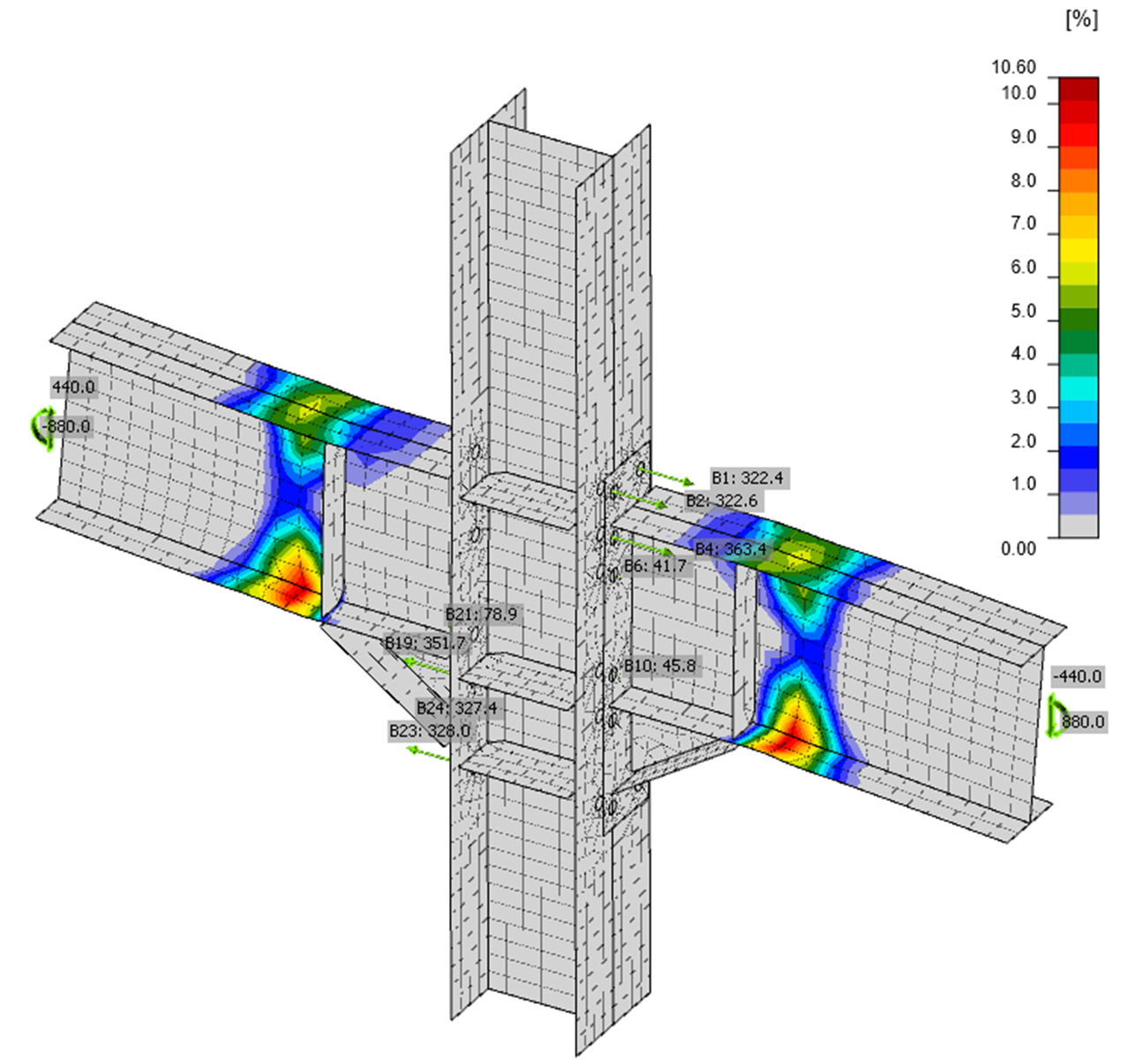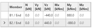 Všimněte si, že pokud je použit oboustranný přípoj nosníku se sloupem, musí mít síly od stejného zatěžovacího stavu stejný směr, např.: