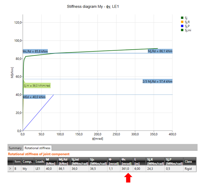 Všechny jsou důležité pro správný seizmický návrh přípoje. Rotační kapacita (rotace ϕc) se používá pro hodnocení duktility přípoje. Uvedenou hodnotu lze porovnat s hodnotami doporučenými v normách.