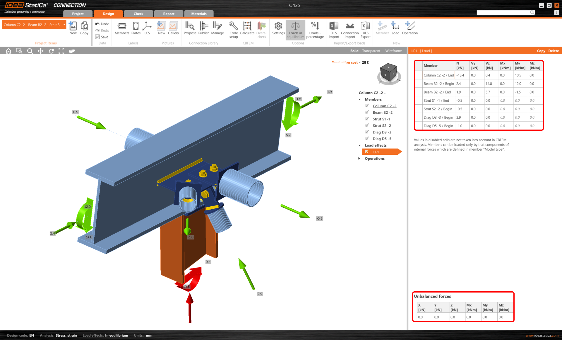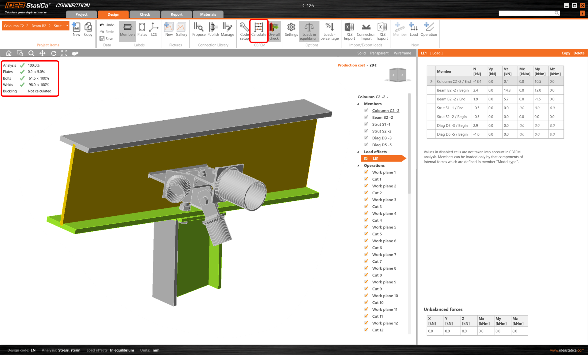 Importovaný připoj se otevře v aplikaci IDEA StatiCa Connection.