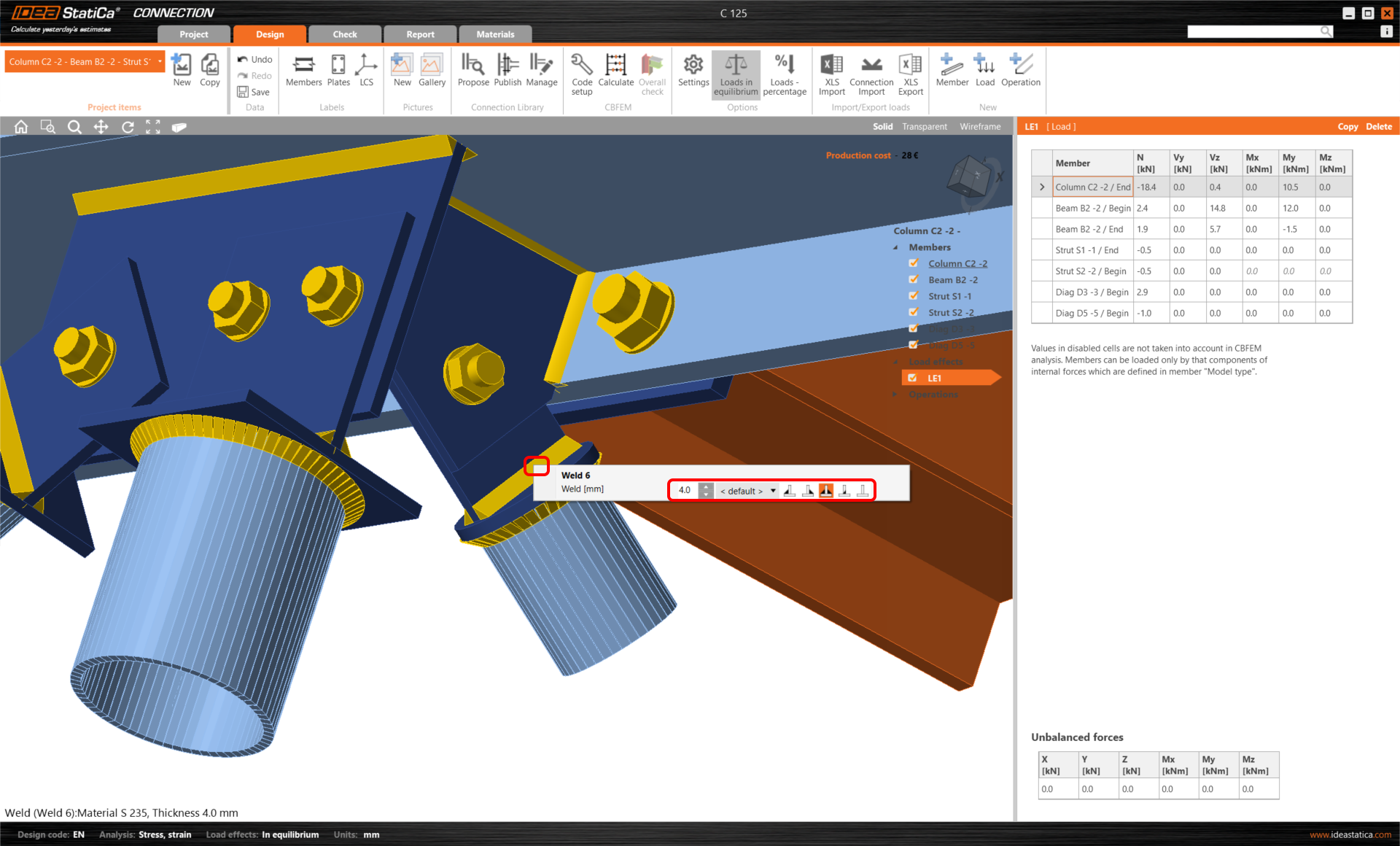 Pokud přípoje nedávají požadované výsledky, můžete je znovu otevřít a optimalizovat návrh (tj. zesílit, pokud nevyhoví normovému posudku, nebo zeslabit, pokud je využití příliš nízké).