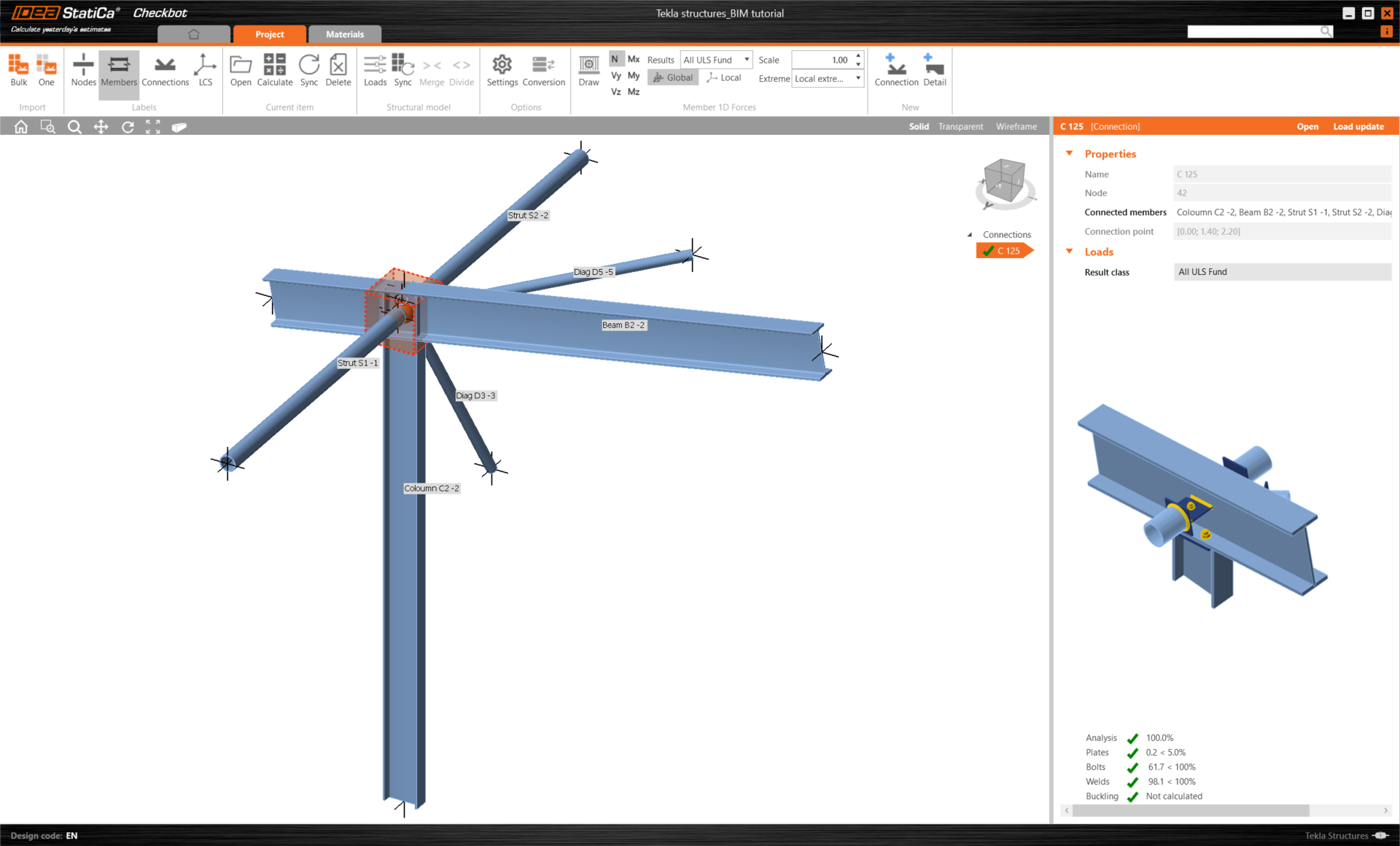 Úspěšně jste propojili Tekla Structures s IDEA StatiCa Connection prostřednictvím Checkbotu.