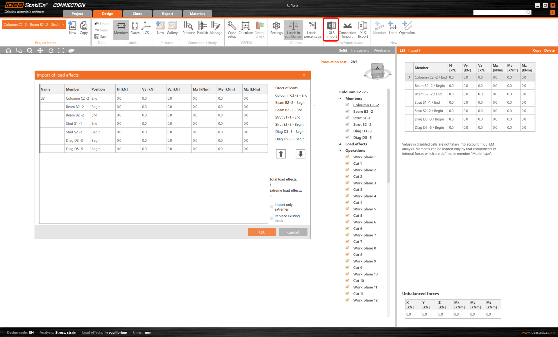 Poté v aplikaci IDEA StatiCa Connection vyberte tlačítko XLS Import na horní liště.