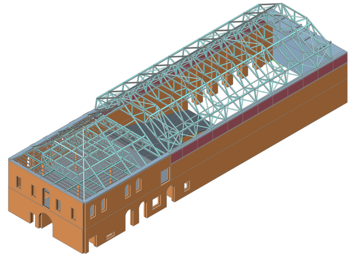 Working inside a protected cultural monument demanded minimal intervention into existing masonry while coordinating many stakeholders and modern building services. Frequent late‑stage layout adjustments, driven by multidisciplinary needs and conservation requirements, meant the sizing of truss members and numerous bespoke connections became a moving target. The geometry had to accommodate the preservation of the trough‑shaped ceiling while still housing sizable HVAC units, which significantly altered the loading regime compared to the original roof.