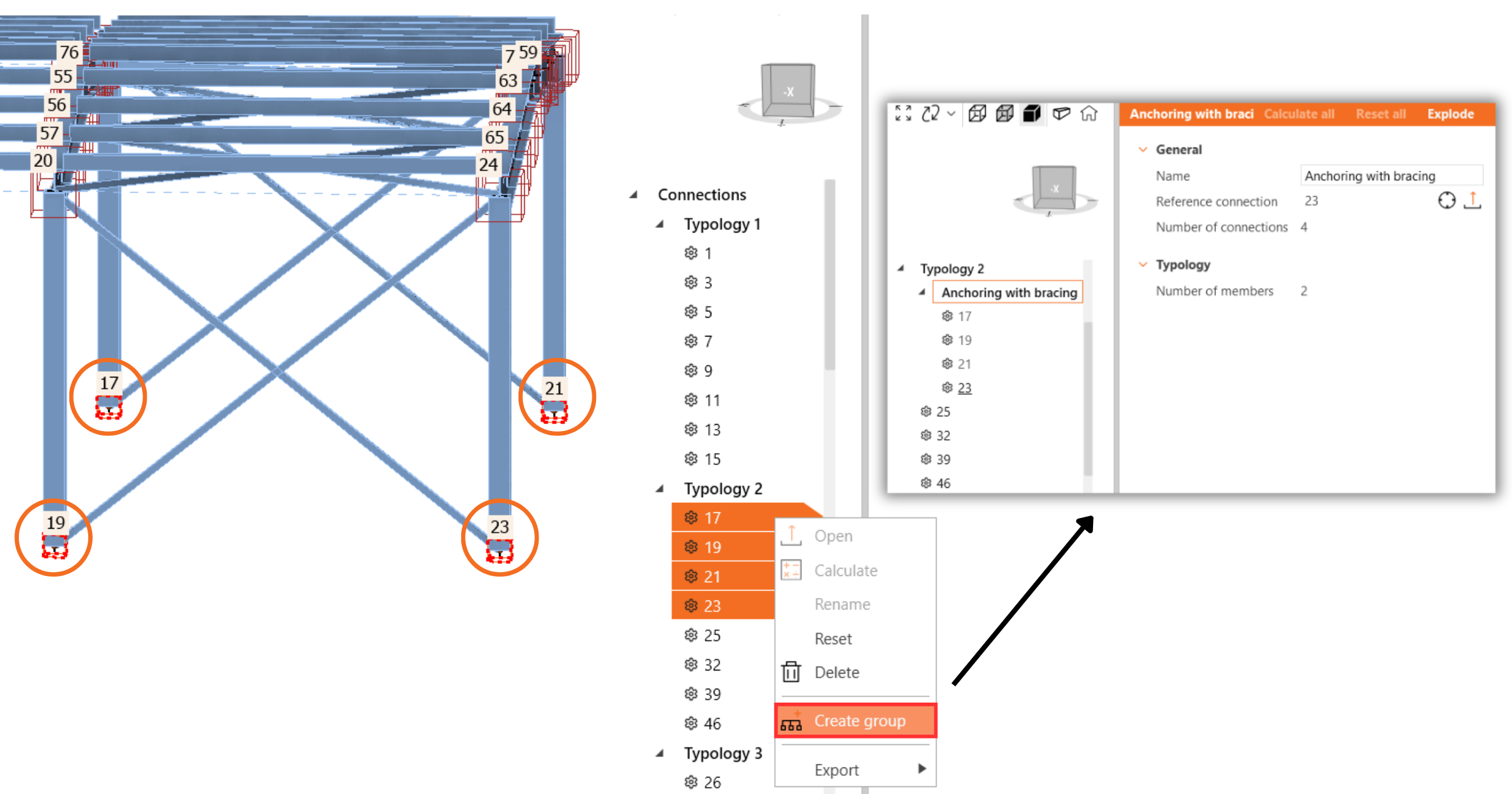 Alternatively, the connections could be imported one by one by selecting only one or more connections. The connections of the same typology are sorted into one arrangement or group.