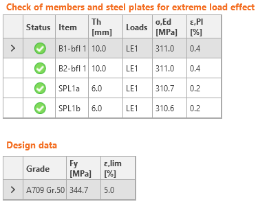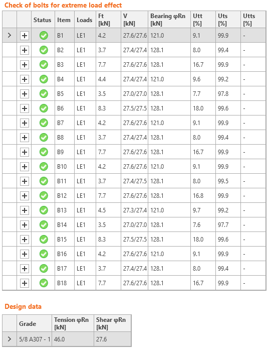 The tensile forces in bolts are neglected in manual calculation but they do not affect the shear strength of bolts by much. The load resistance in IDEA StatiCa Connection is 494 kN while in manual calculation, it is 496 kN. In IDEA StatiCa Connection, bolts are decisive and the plates are yielding. In manual calculation, the bolts and plate tensile rupture have the same load resistance. The difference between results provided by software and manual calculation is only 0.4 %.