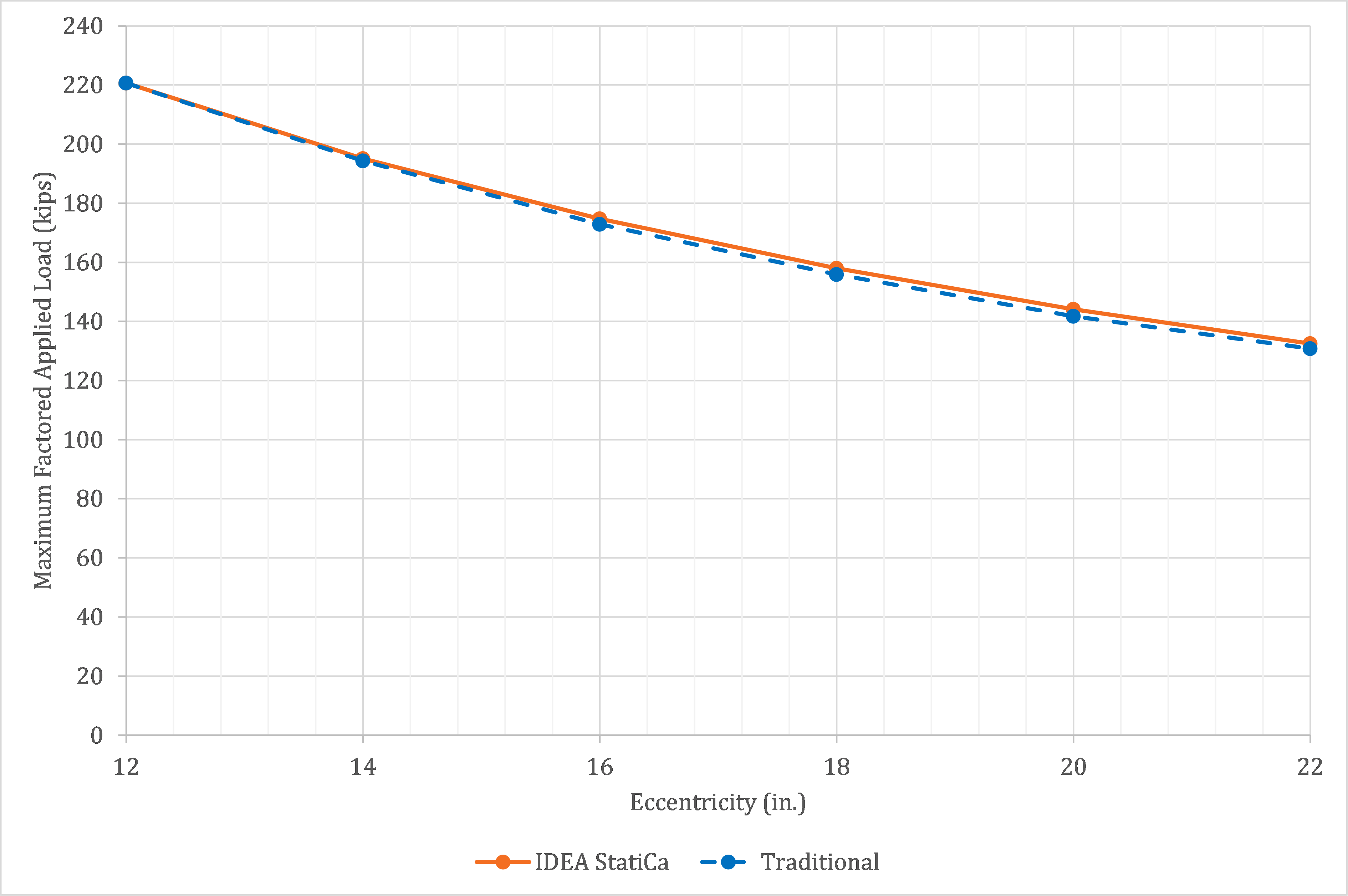 Fig. 4 Maximum factored applied load vs. eccentricity