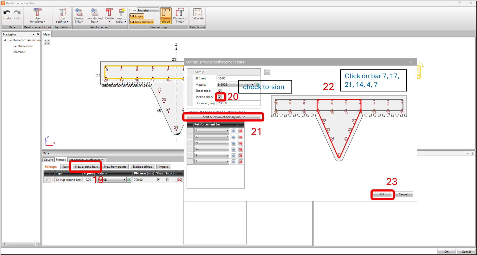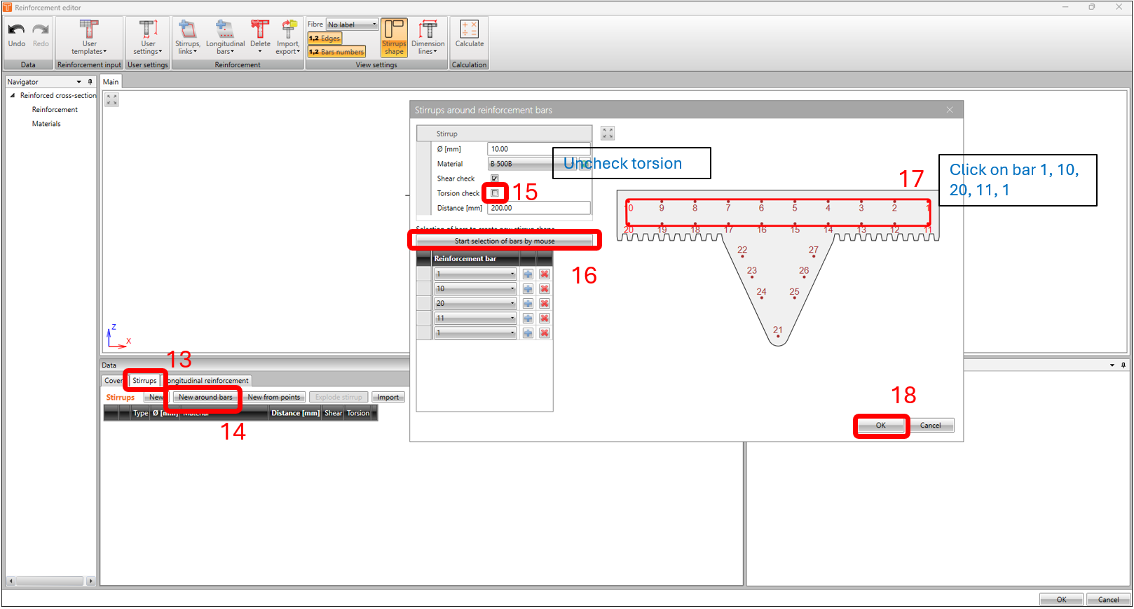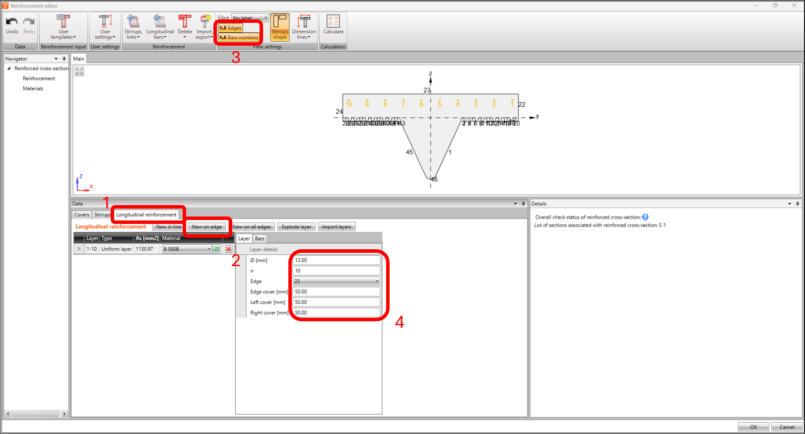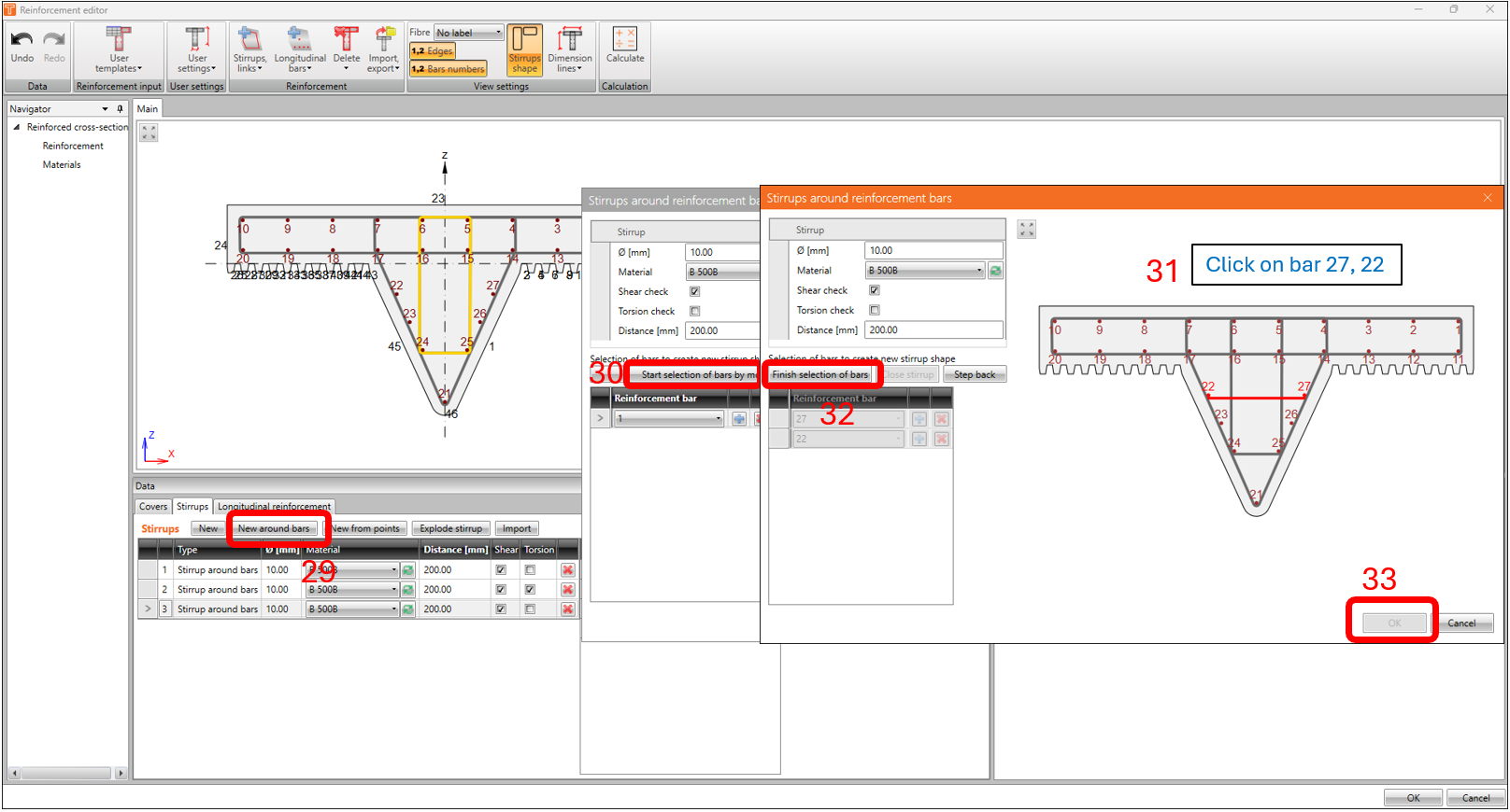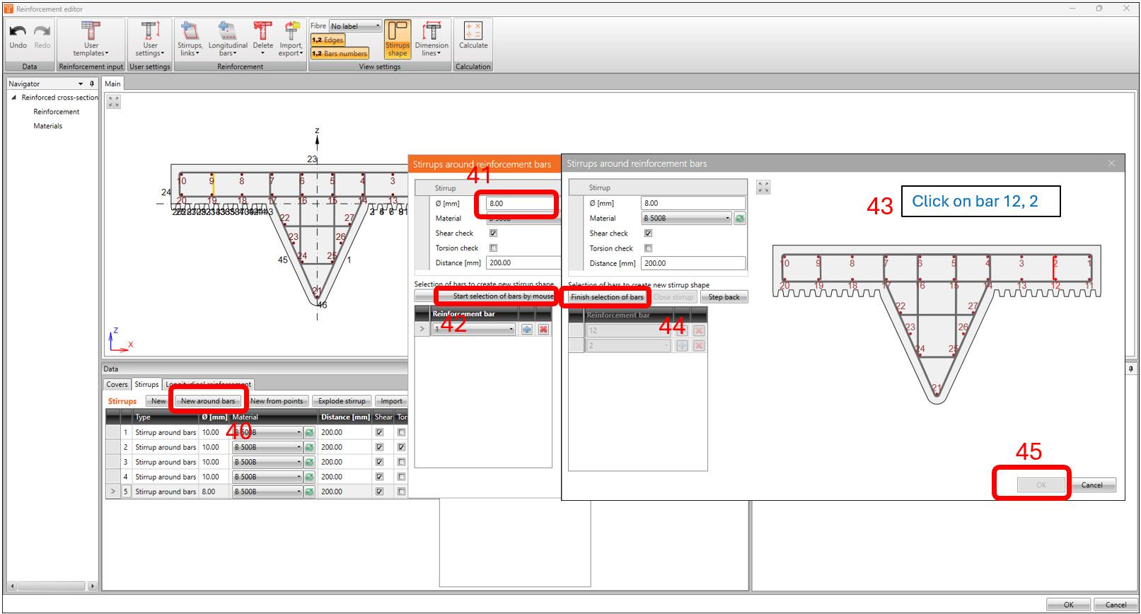 Usually, the best option would be to use a template or import a reinforcement file (which is available for download at the end of this article), but in this example, we’ll do the basics and use the steps highlighted and using the same parameters in the following images below.