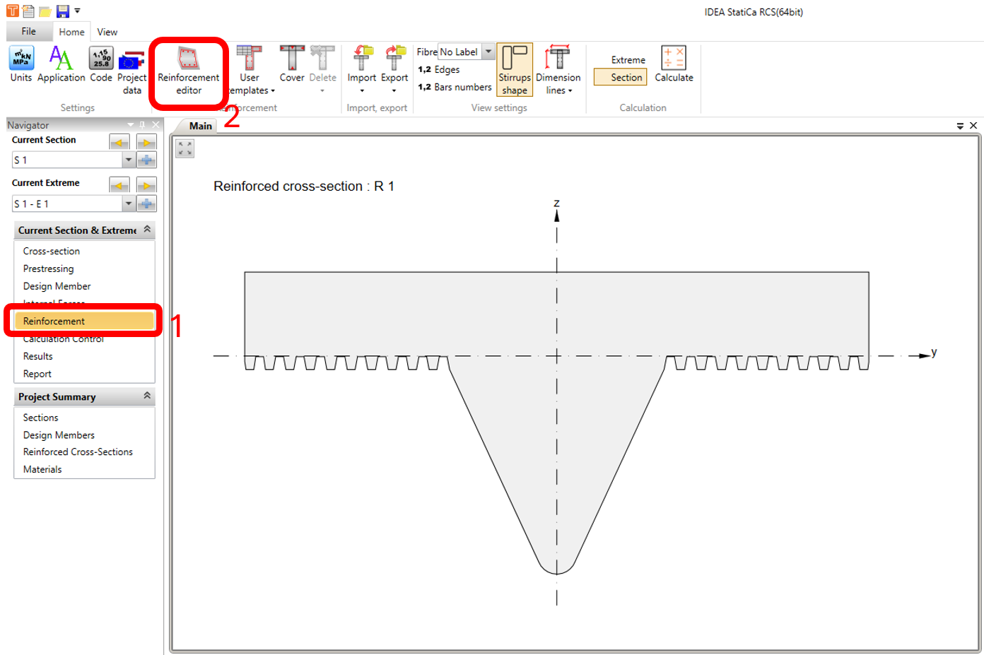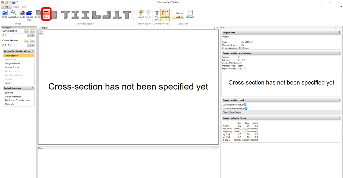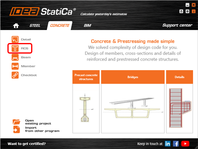 Open IDEA StatiCa and click on CONCRETE tab and select the application RCS.