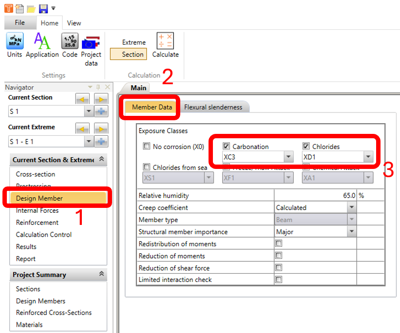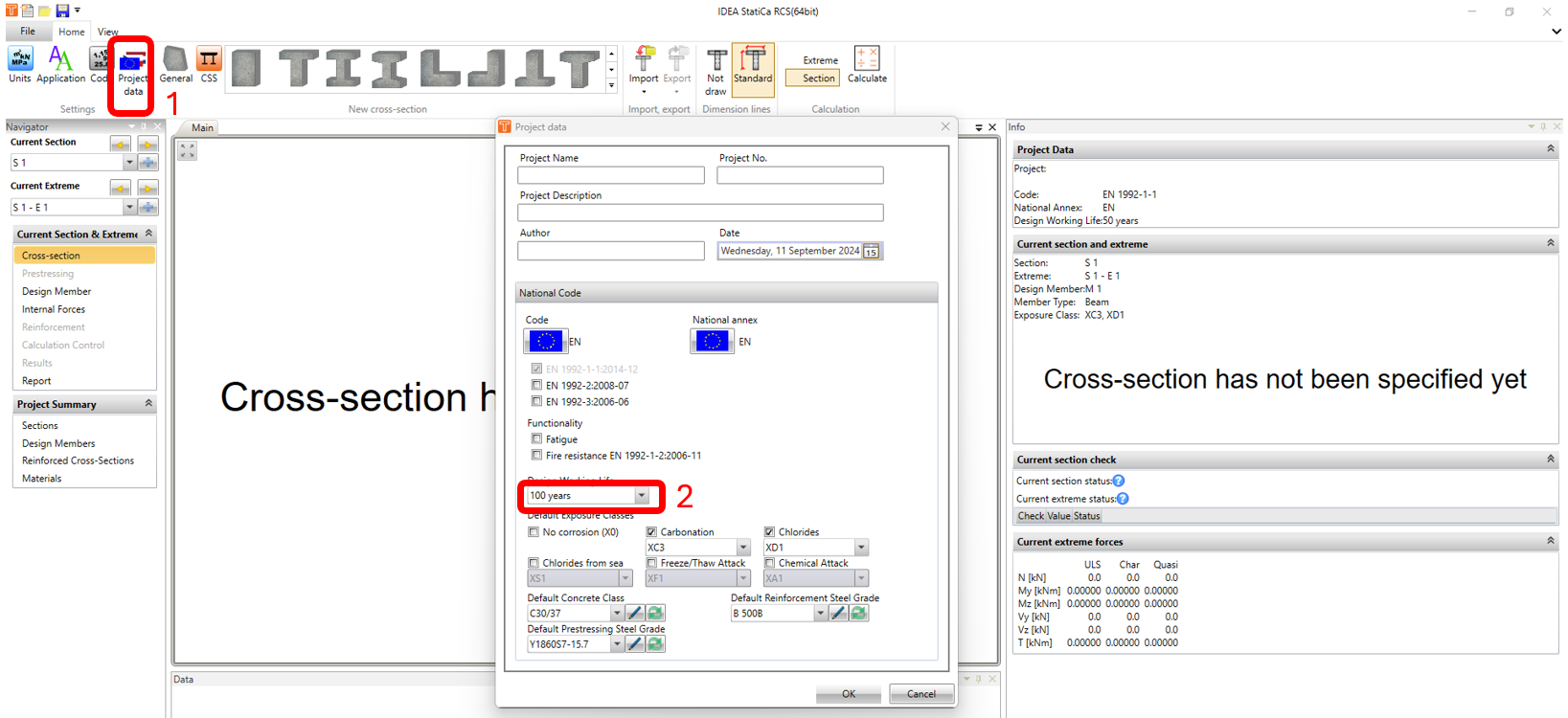 In the Cross Section Navigator window, click on Project Data icon. In Project Data window, change the design working life to 100 years and click on OK.