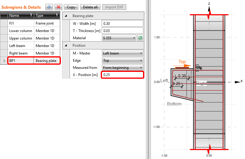 Danach können Sie die Lagerplatte BP1 in die Mitte verschieben. Ändern Sie dazu seine X-Position auf 0,25 m.
