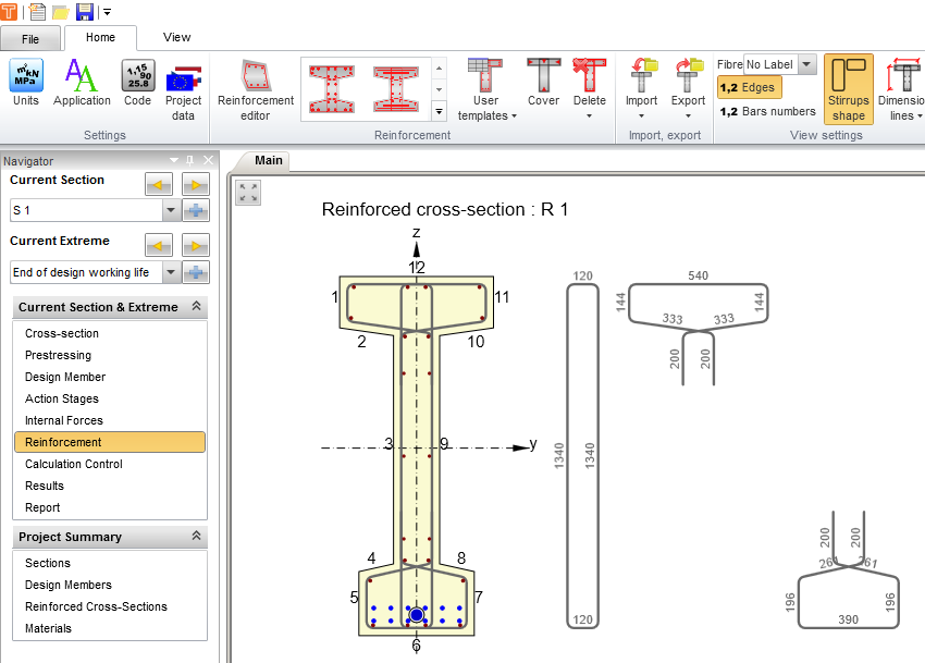 You have designed, reinforced, and code-checked a prestressed I-section according to Eurocode.
