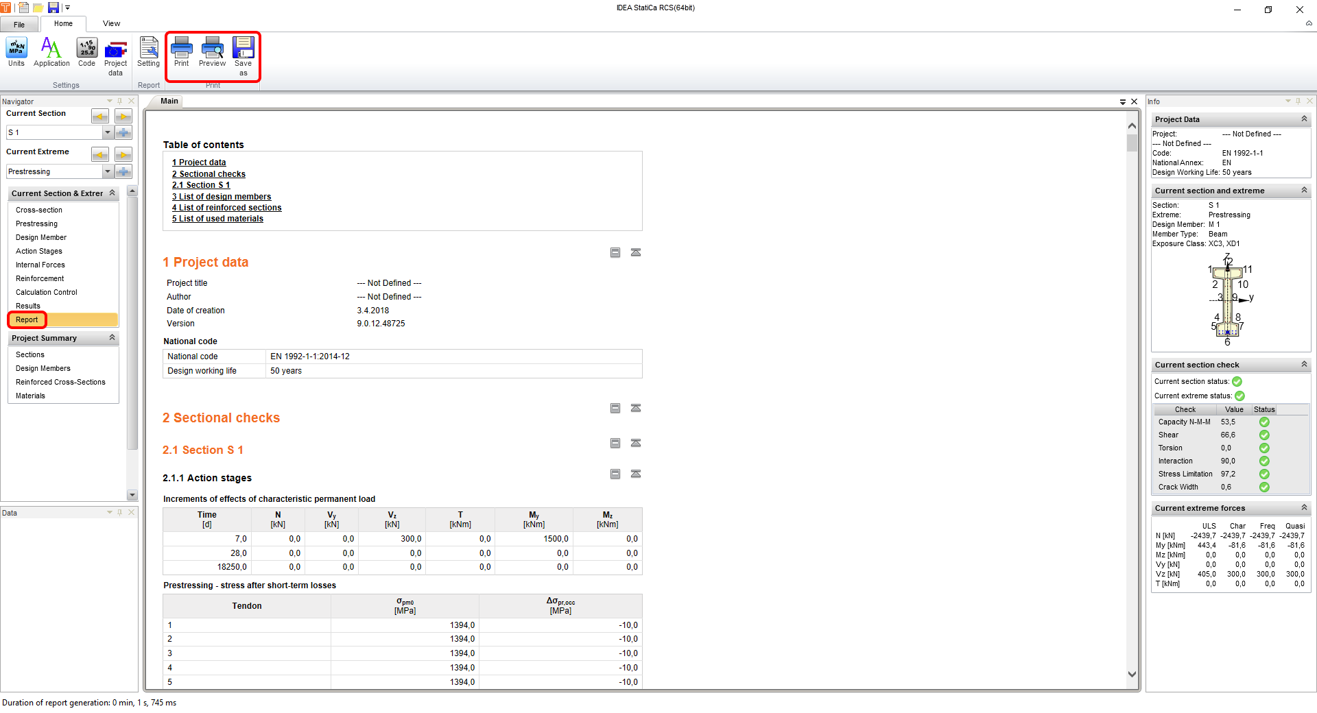 At last, go to the Report Preview/Print. IDEA StatiCa offers a fully customizable report to print out or save in an editable format.