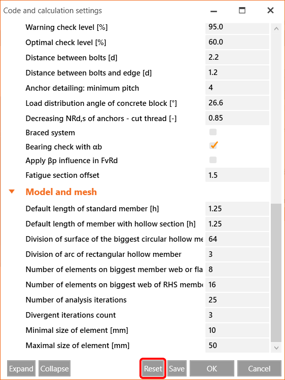 Now the default length is set to the same value of 1.25 x cross-section height for both types. The length of the condensed superelements is 4 x cross-section height for standard stress-strain analysis. Because we wanted to keep the buckling mode shapes within the internal plates of the connection and not in the members, the length of the superelements for linear buckling and stiffness analysis is set to 0.5 x cross-section height.