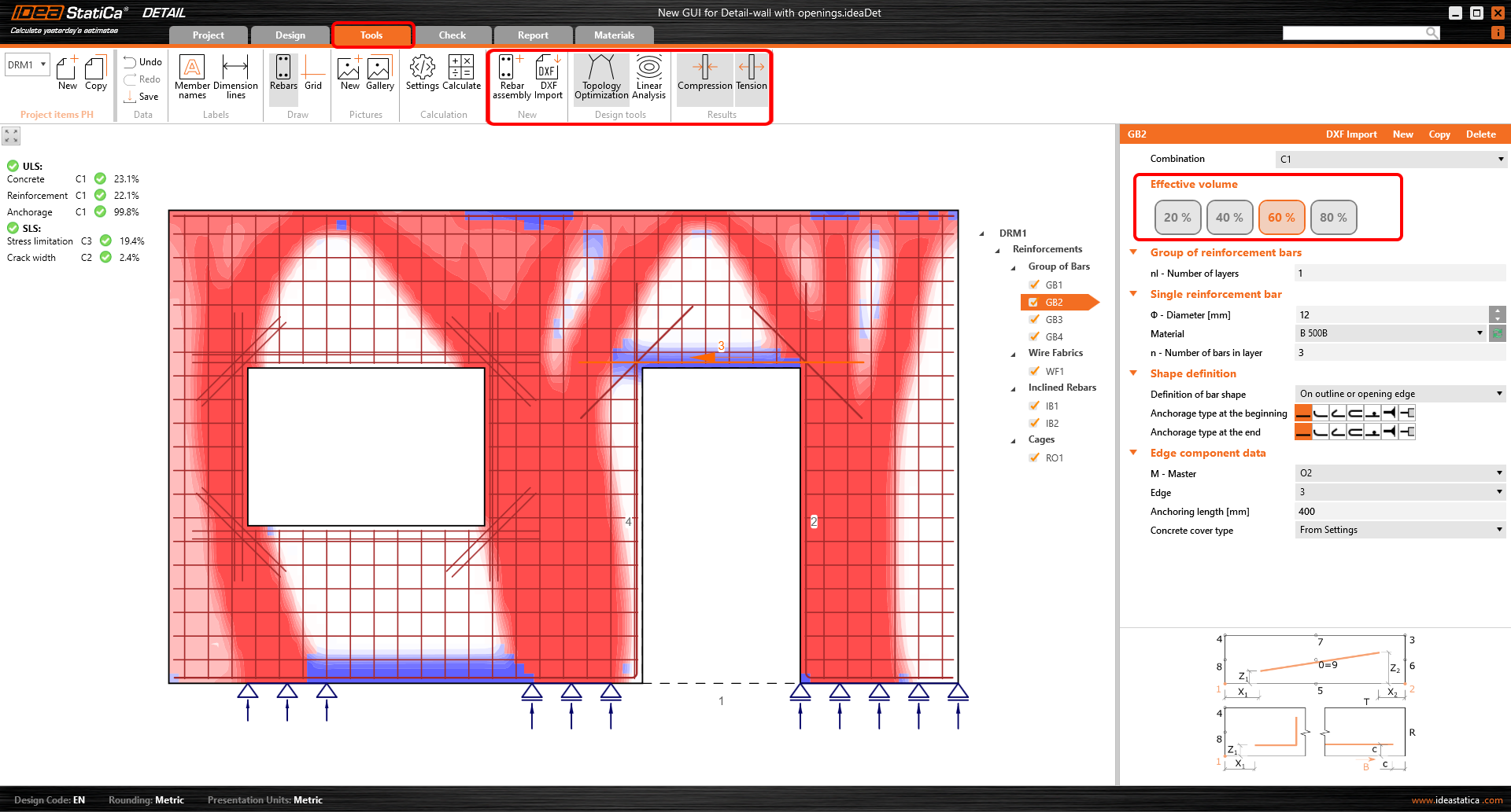 Suppose you're struggling with where to put the reinforcement, if the reinforcement around an opening is really necessary at such a quantity, or even at all, or if you'd like to see the stress flow (so far without considering the reinforcement). In that case, I recommend using two helpful functionalities – Topology Optimization and Linear Analysis.