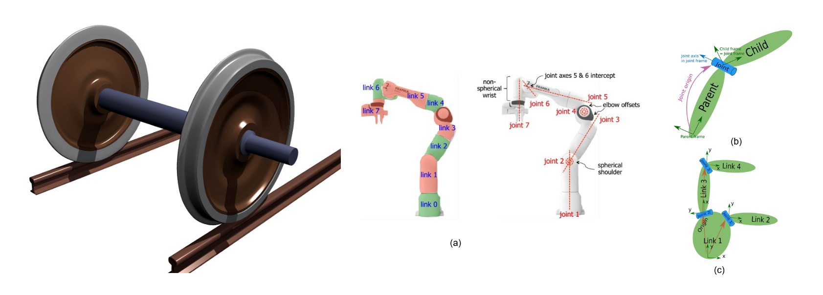 Illustration figure: wheelset for trains and kinematics behind the motion of the robotic arm