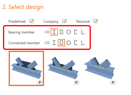 You can filter these templates based on the cross-section of the bearing member and/or the connected members.