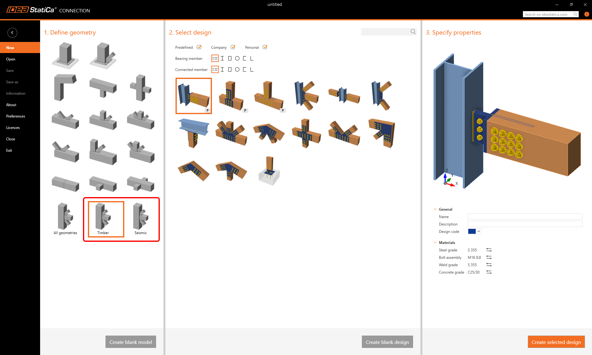 Templates for Timber connections or for Seismic design are special, therefore, they are listed in specific categories.