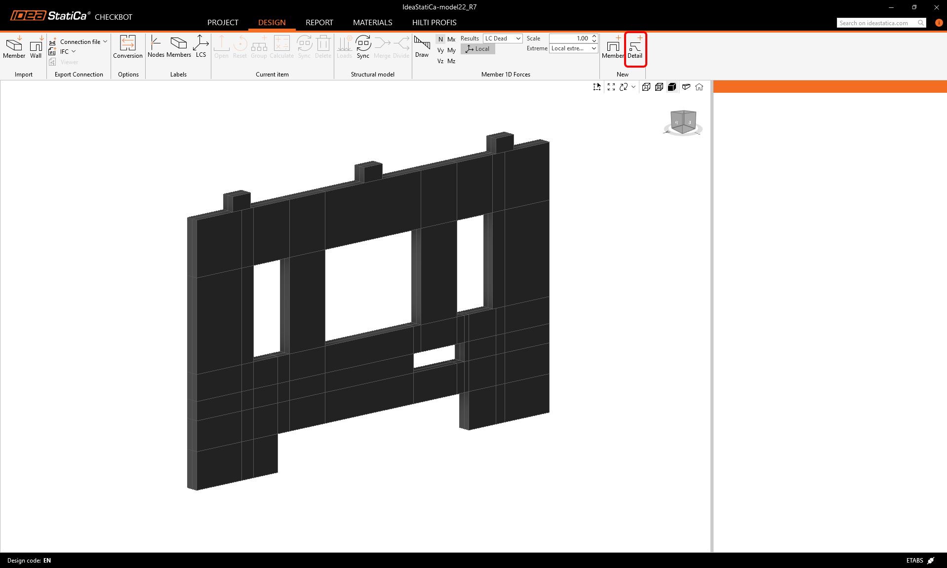After import, we should see the wall in Checkbot. We will now export it into the Detail application by first clicking the Detail+ button in the top ribbon:
