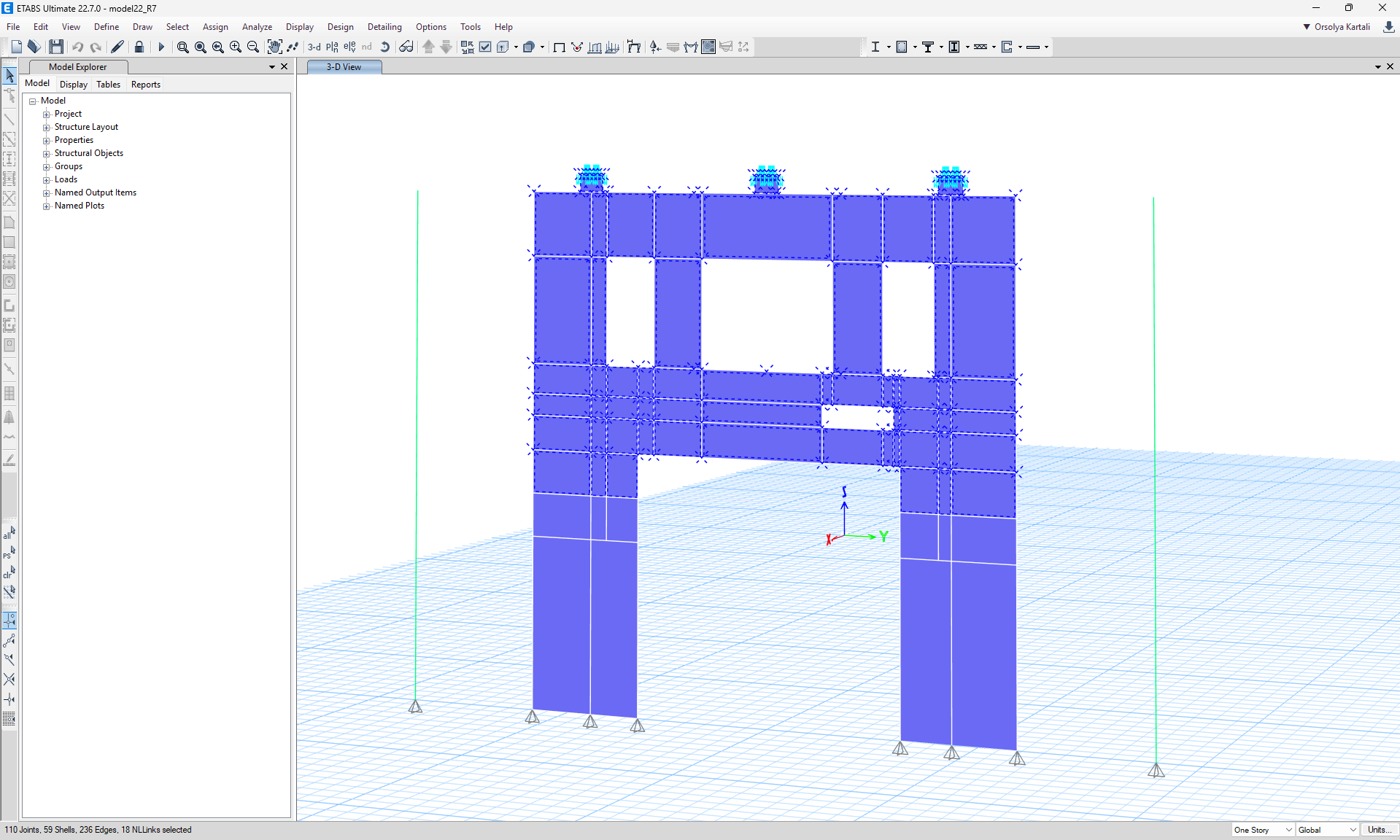 Also, when a frame is connected to the analyzed wall, you need to use rigid link (light blue color in the picture above) to ensure proper distribution of internal forces from frame to shell – not concentrated into one node only.