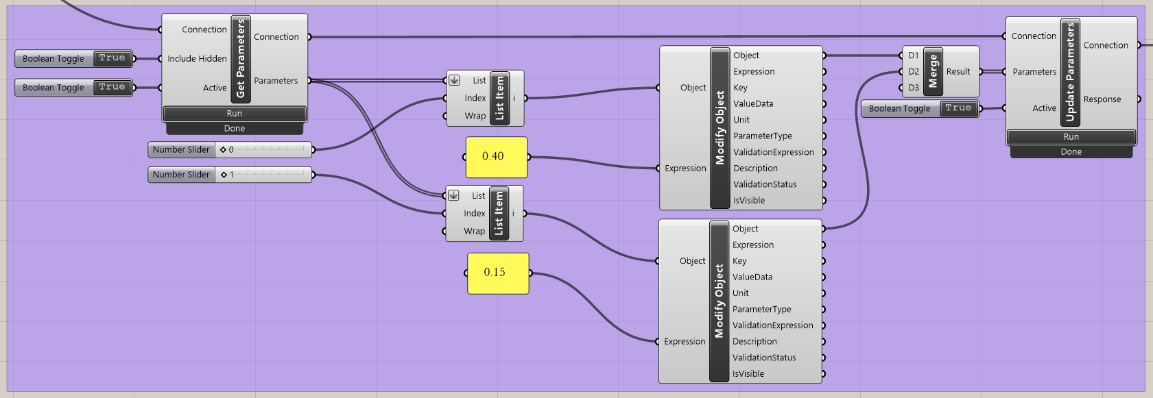 Here is the whole picture of the Grasshopper file to see the links between the components: