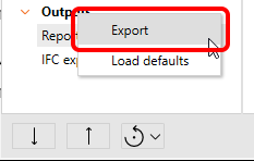 Report templates can be exported and imported. Using the Export option under the Outputs section, you can store customized report setups, for instance, short summaries, full detailed outputs, or client-specific formats.