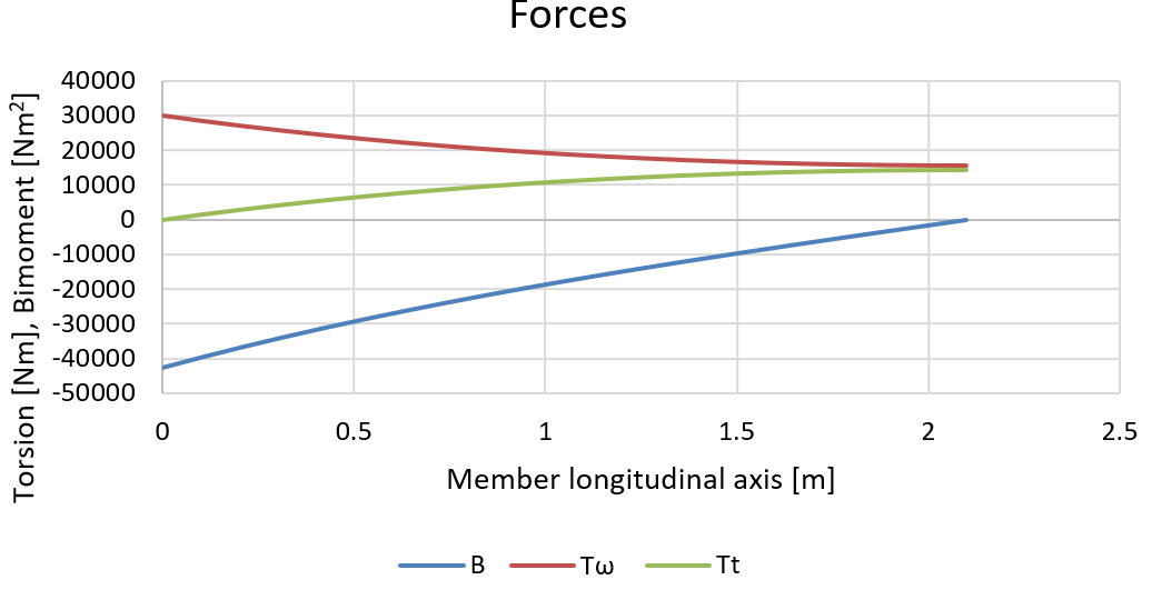 When torsion is applied, and this may be either directly by entering Mx or applying a shear force to an unsymmetrical member, e.g. channel or angle, warping stresses develop.