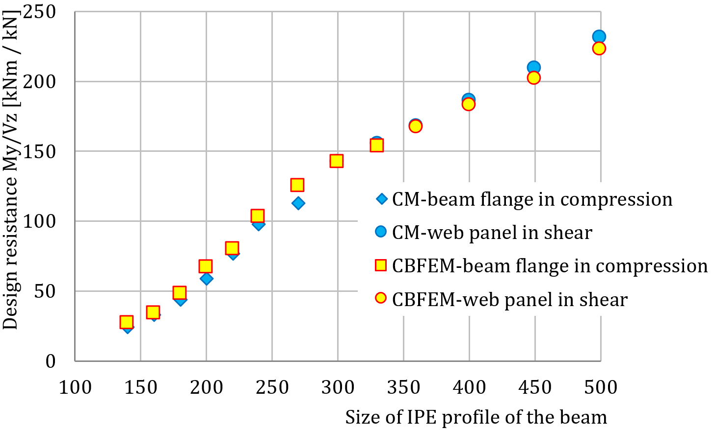 The results calculated by CBFEM are compared with CM. The comparison is focused on the design resistance and the critical component. The study is performed for three different parameters: beam cross-section, column cross-section, and thickness of the column web panel.