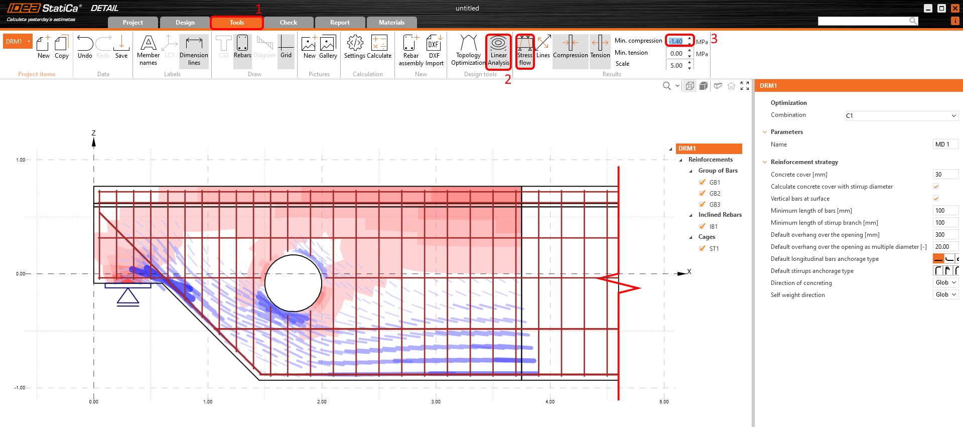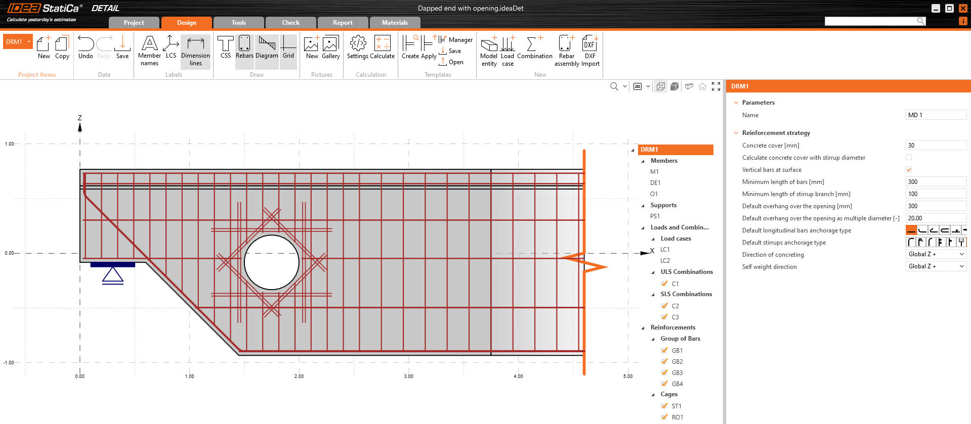 To reinforce this particular model, start with a predefined template in IDEA StatiCa Detail and modify it. Before doing that, you would like to see, how to reinforce it based on design tools results.