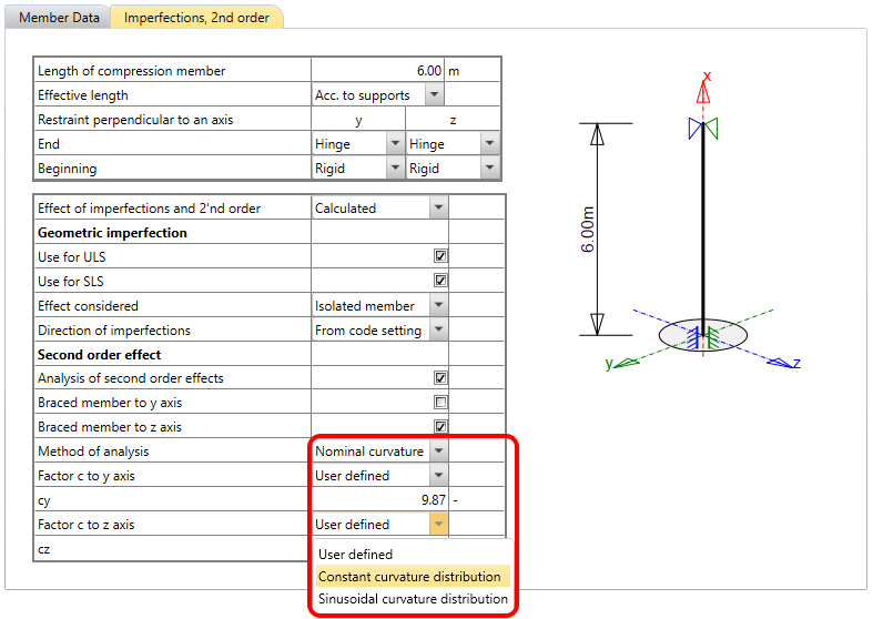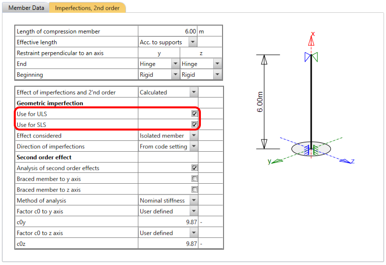 Both of them are according to EN 1992-1-1 articles 5.8.7 and 5.7.8. Member type has to be set as a Compression Member to access the functionality.