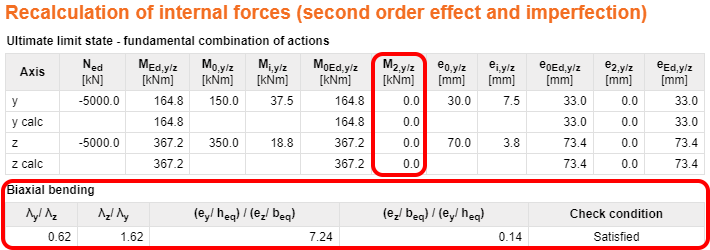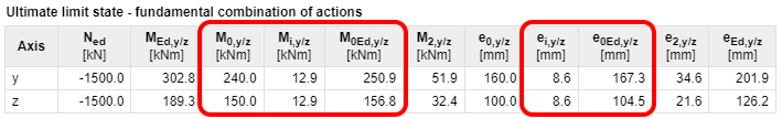 As for the previous method, all intermediate results can be explored in Navigator -> Second Order Effect. The final result is the design moment about the "y" and "z" axis, respectively.