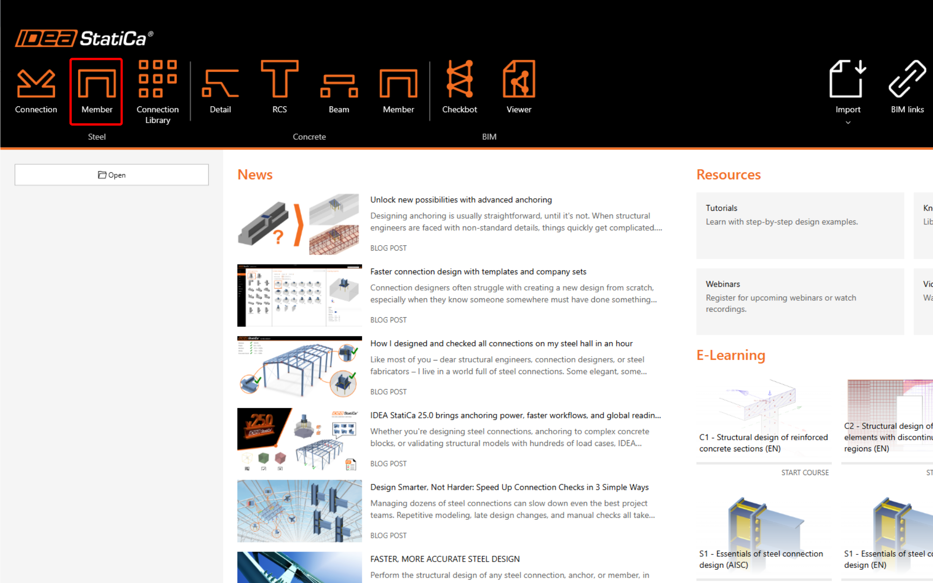 Start by launching IDEA StatiCa and selecting the Member application (download the latest version).