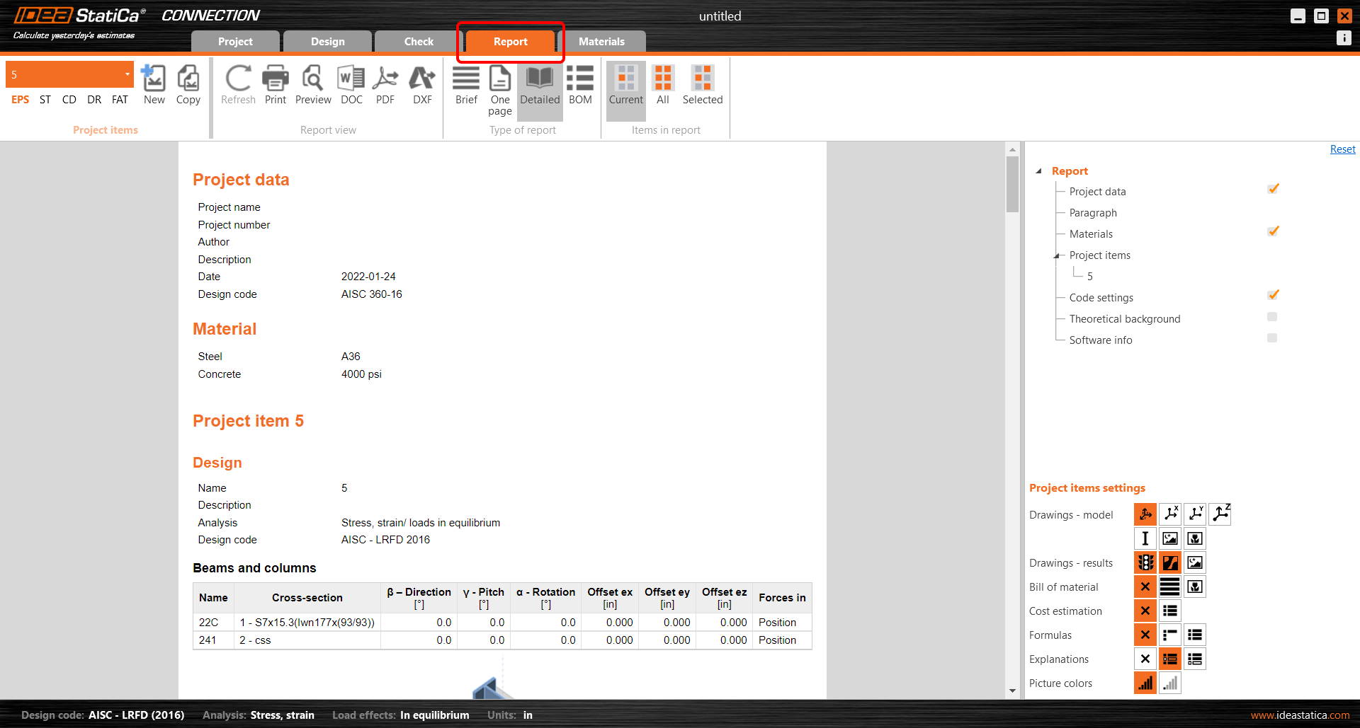 IDEA StatiCa offers a fully customizable report to print out or save in an editable format. For more information, please see here.