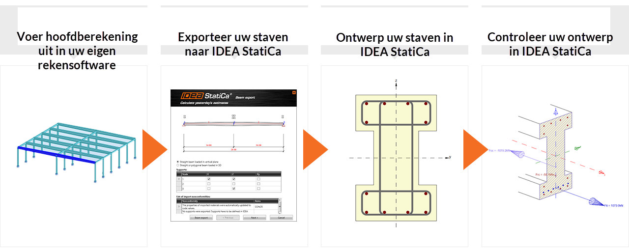 IDEA StatiCa werkt met uw SAP2000. U kunt elke betonnen ligger in SAP2000 selecteren en deze naar IDEA StatiCa exporteren voor norm-controle. Geëxporteerde gegevens zijn onder meer liggers, doorsneden en interne krachten. IDEA StatiCa en SAP2000 geven u een efficiënte workflow voor uw concreet ontwerp dat tijd en geld bespaart.