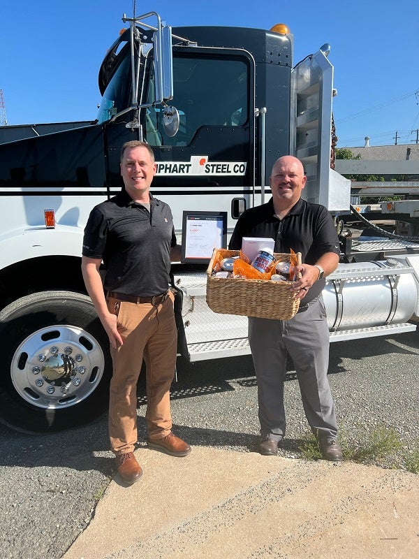 As a thank you, Phil Lutz, Engineering Manager at Liphart Steel, received the certificate of appreciation and gift basket, delivered by our very own Dave Eckrote - Managing Director for the US market.