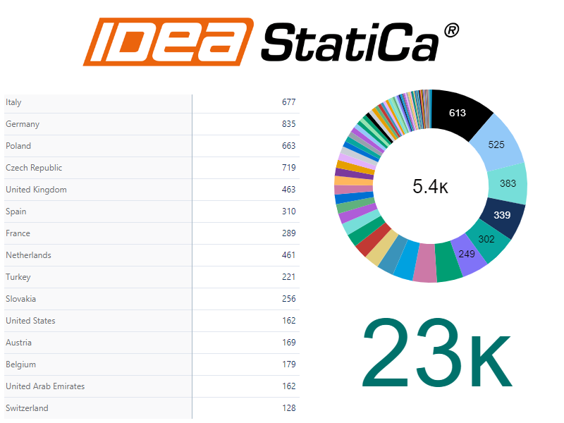 It is nice to see that the number of active users of IDEA StatiCa has grown from 17k to 23k since last June and to 5.4k active licenses!