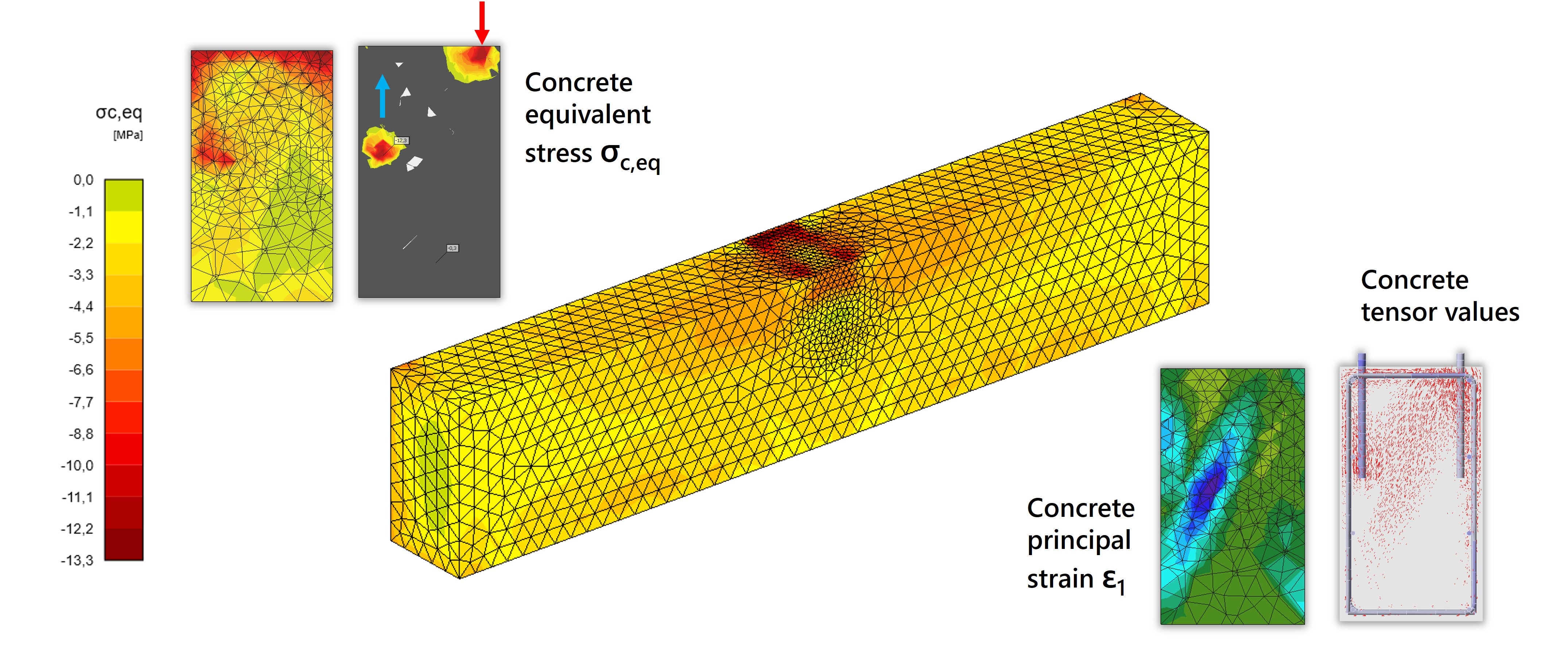 Fig. 9: Resultaten van de CSFM-berekening voor beton.