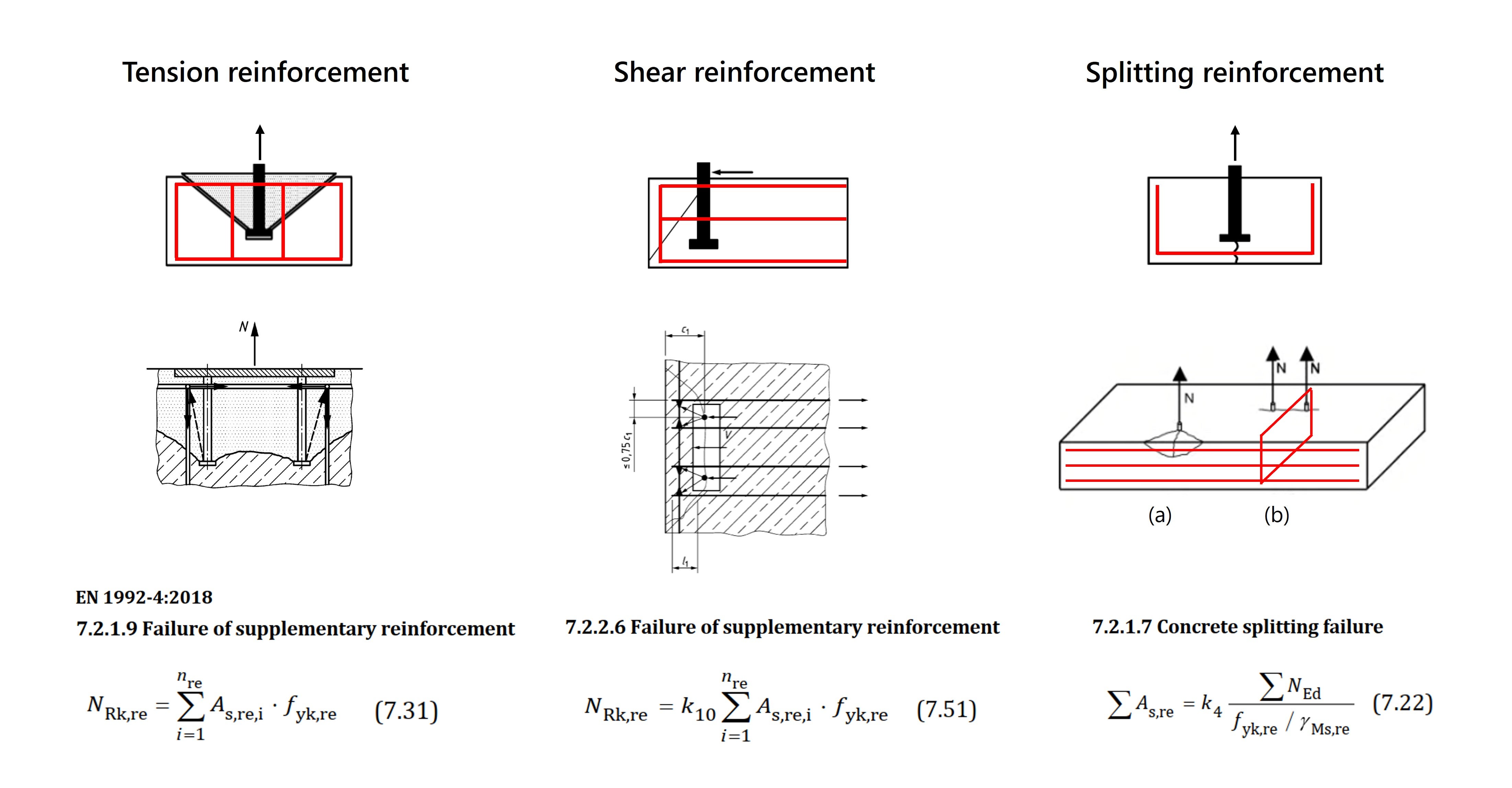 Fig. 6: Aanvullende wapening ontwerpen voor trek, afschuiving en splijten volgens EN1992-4.