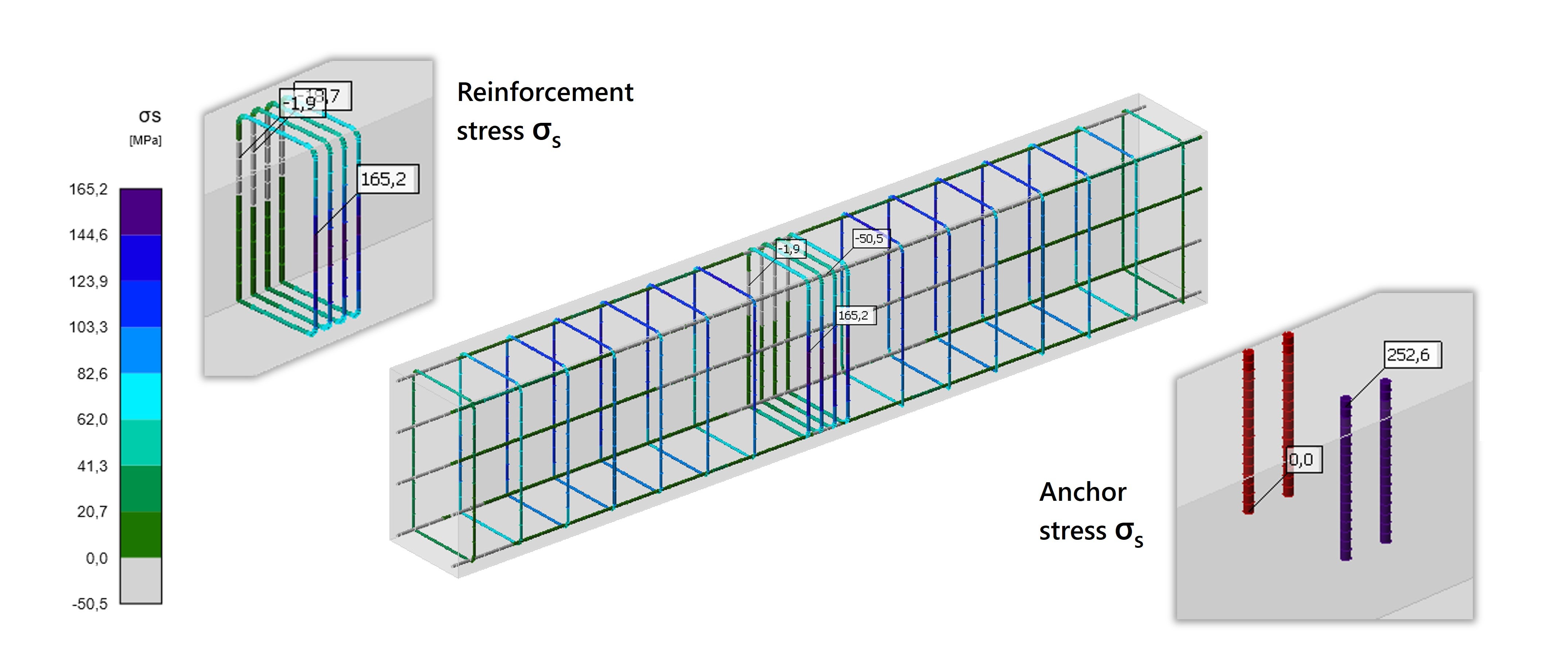 Fig. 10: Resultaten van de CSFM-berekening voor staal wapening & ankers.