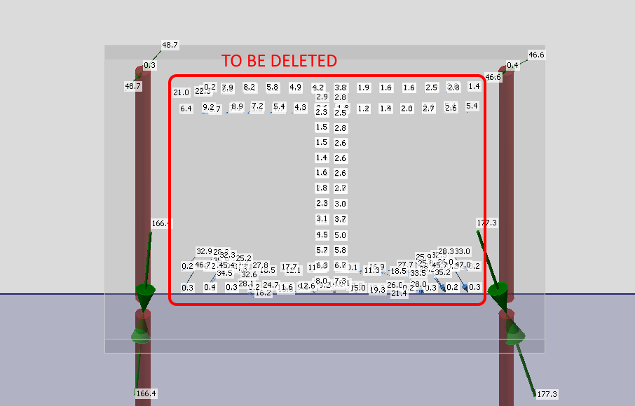 Workaround: Voor de optie Gap wordt aangenomen dat de belasting volledig wordt overgebracht door de ankers. Gebruikers kunnen de geometrie importeren, de voetplaat verwaarlozen en alleen de belaste ankers in het model laten. In dit geval moet de groep krachten die op de voetplaat werkt handmatig worden verwijderd.
