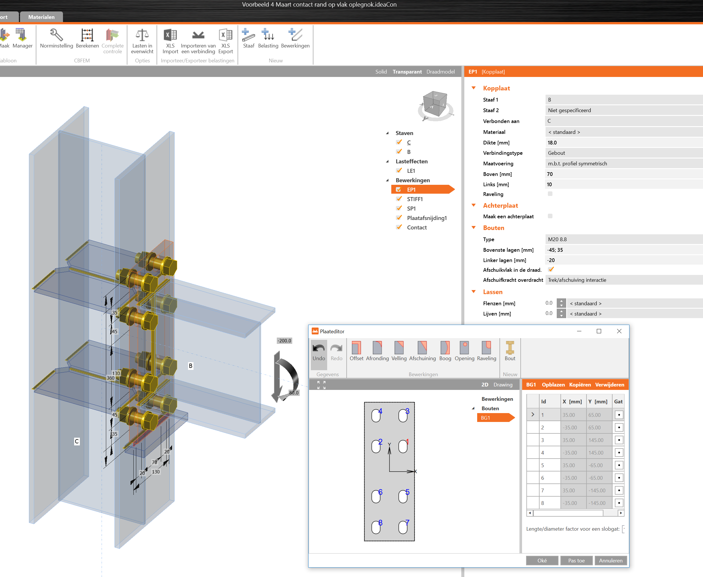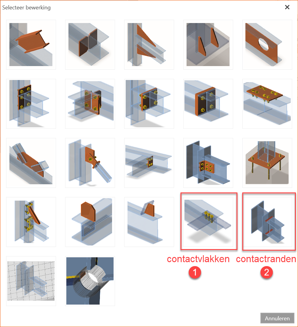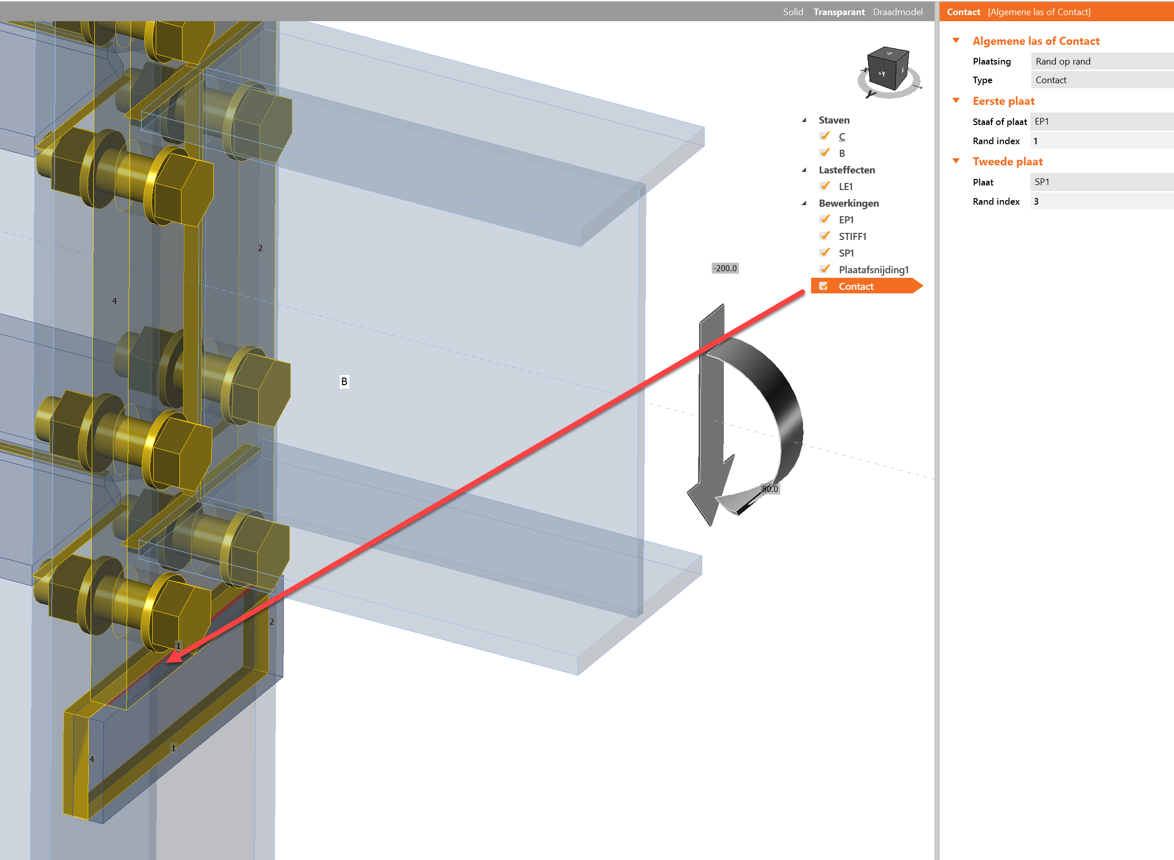 In bijgevoegd model is te zien dat er een contactrand  RAND-op-VLAK (bij 2) is aangemaakt Op een gelijke manier zoals men een las zou aanmaken.